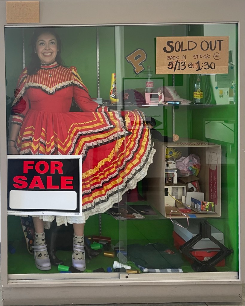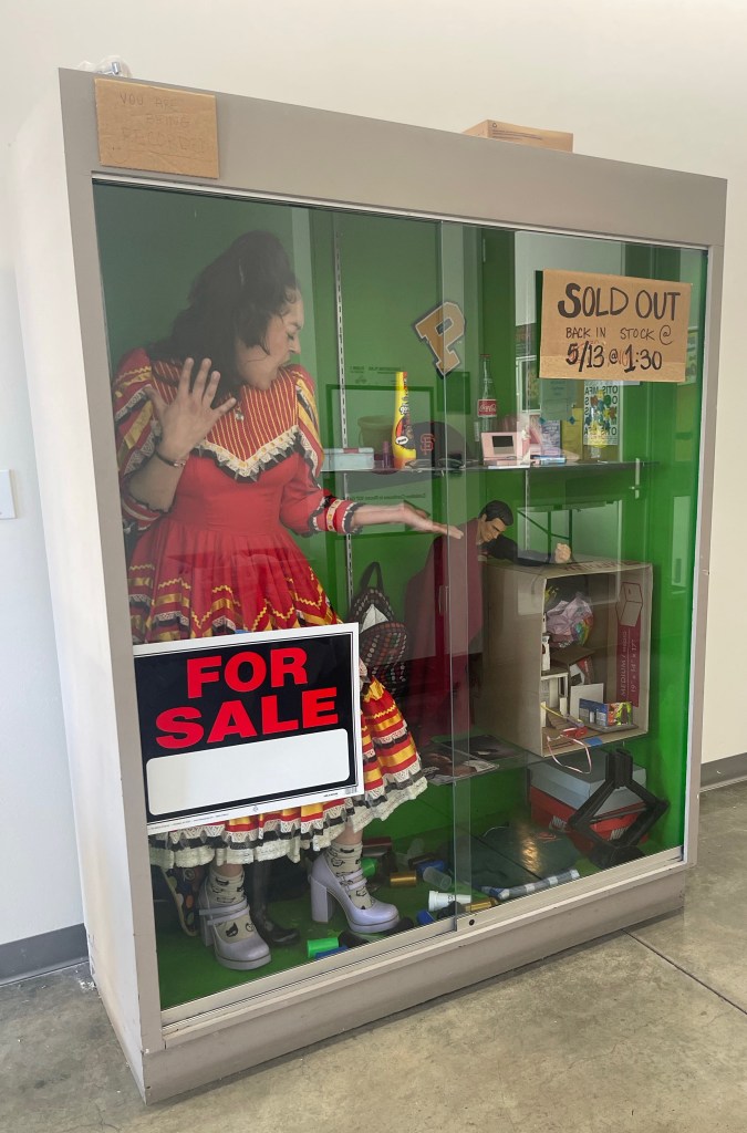 Performance using the body as an object intermingled with personal objects and cardboard sculptures.